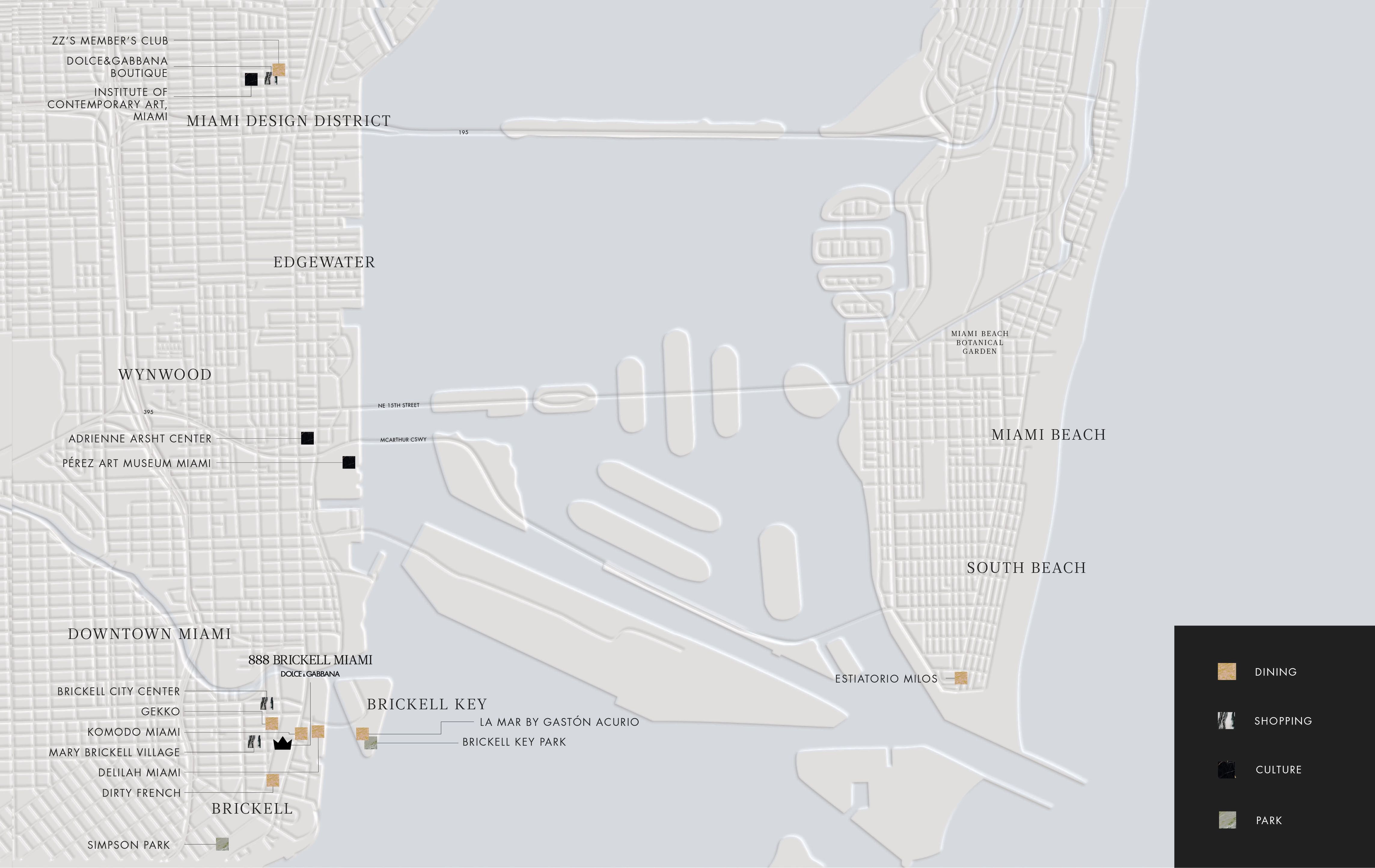 Torre de 90 pisos situada en el corazón palpitante de Brickell, A solo minutos de Downtown Miami, South Beach y el Aeropuerto Internacional de Miami.
